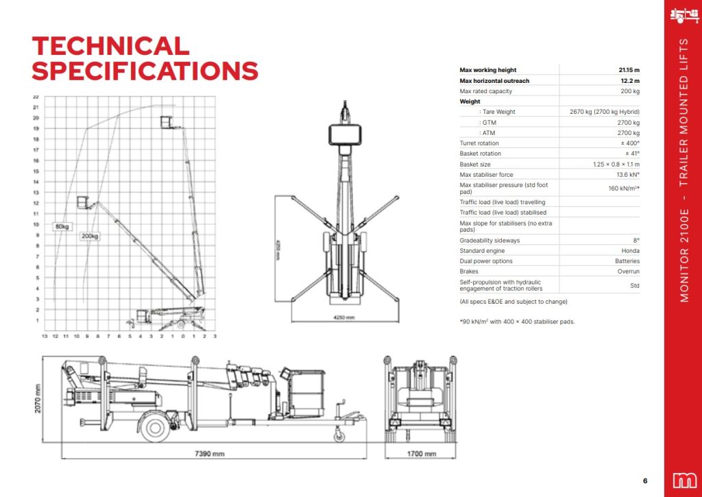 The robust and powerful OMME 2100E is a versatile Trailer Mount Lift with hydraulic self propulsion, and a large durable wheel that locks into the front A frame. This allows access to difficult locations with efficiency and simplicity. Its stick boom configuration provides the operator with an excellent outreach of 12 metres. The hydraulic outrigger legs on this machine provide it with the ability to set up on uneven terrain.